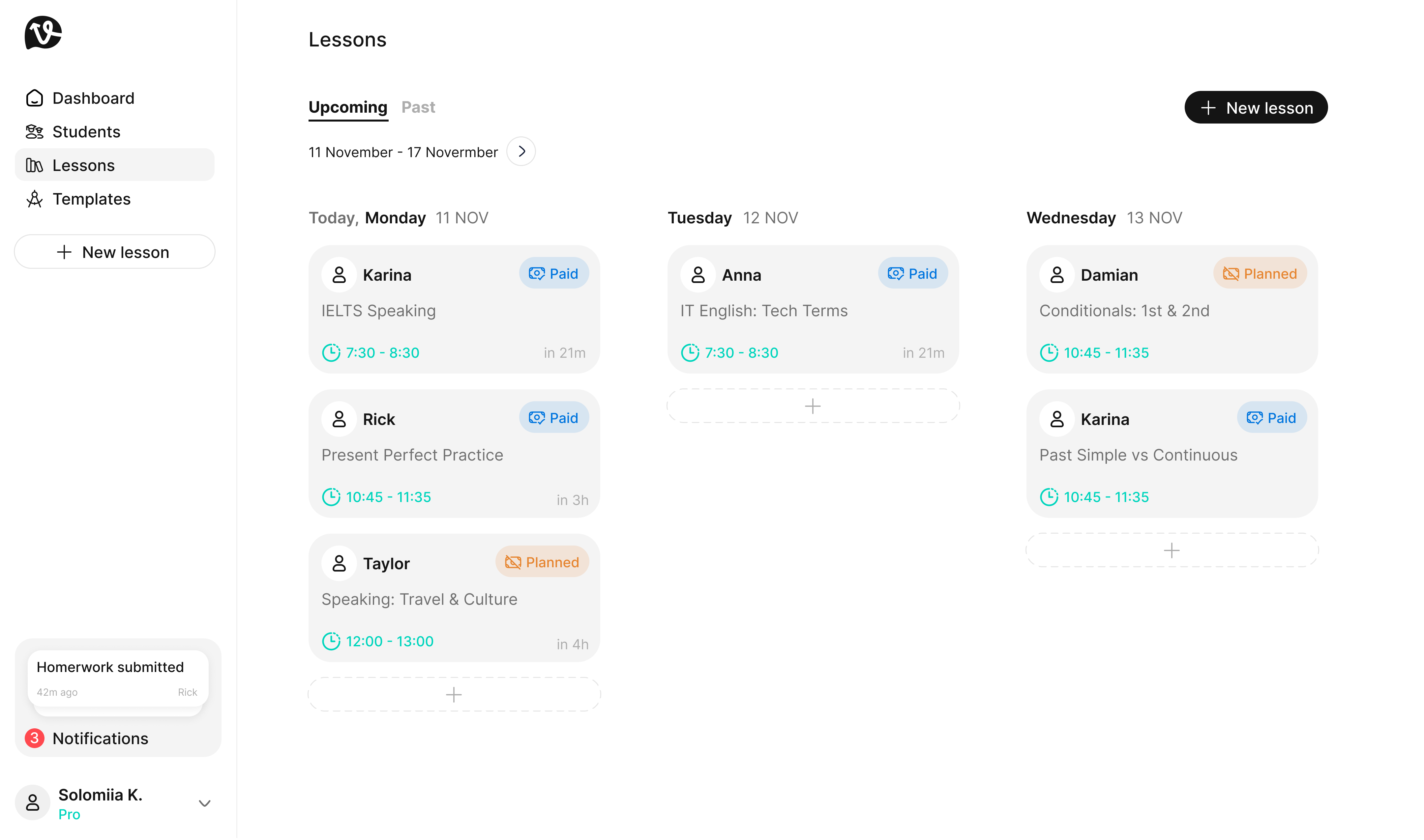 Check homework status before the next lesson.